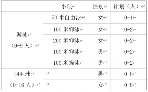 1.招生项目:游泳、羽毛球